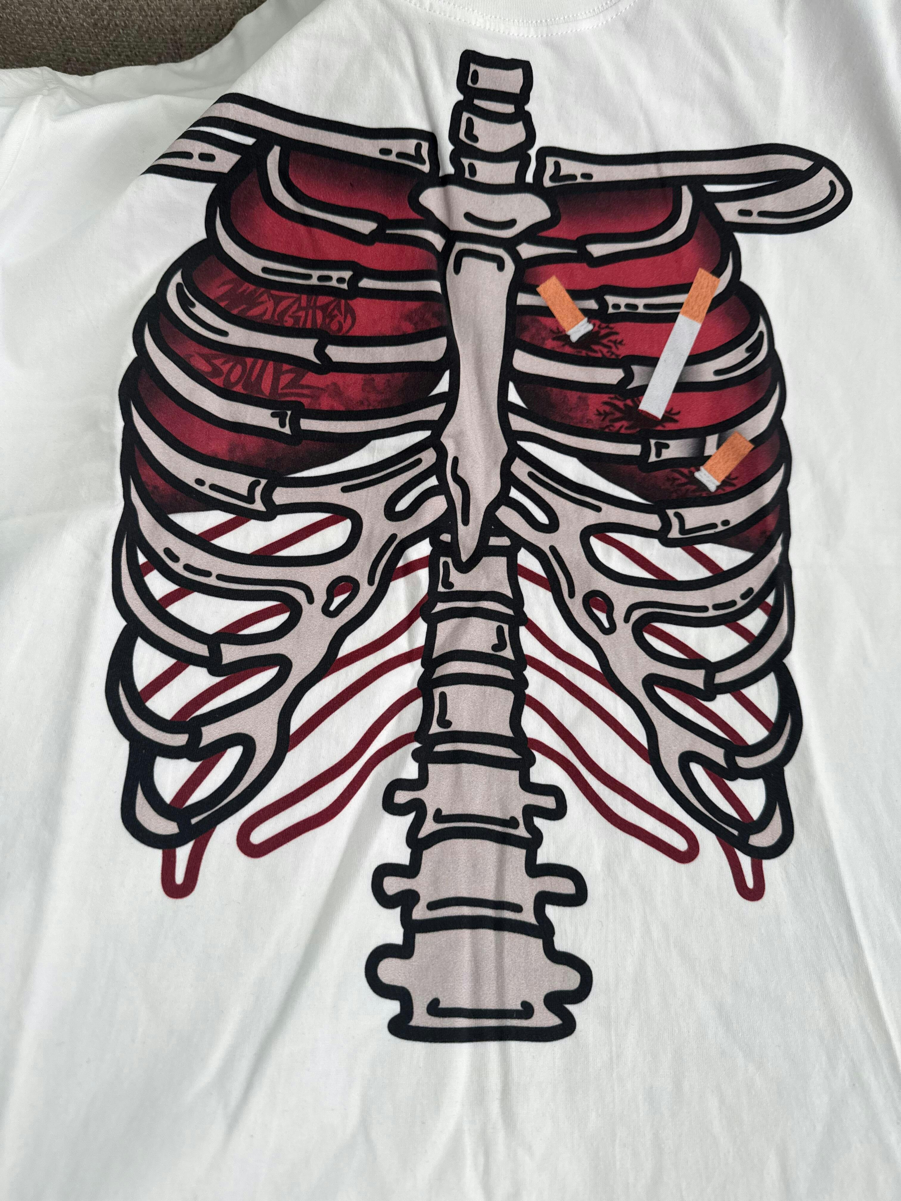 Crafted from 100% cotton, the Pneumothorax Illustrated T-Shirt offers soft, breathable (because these lungs aren't) comfort with an alternative edge. The custom-drawn cigarette design adds a raw, artistic vibe that challenges convention and expresses individuality. Perfect for those who embrace a distinct style with a subtle rebellious twist.